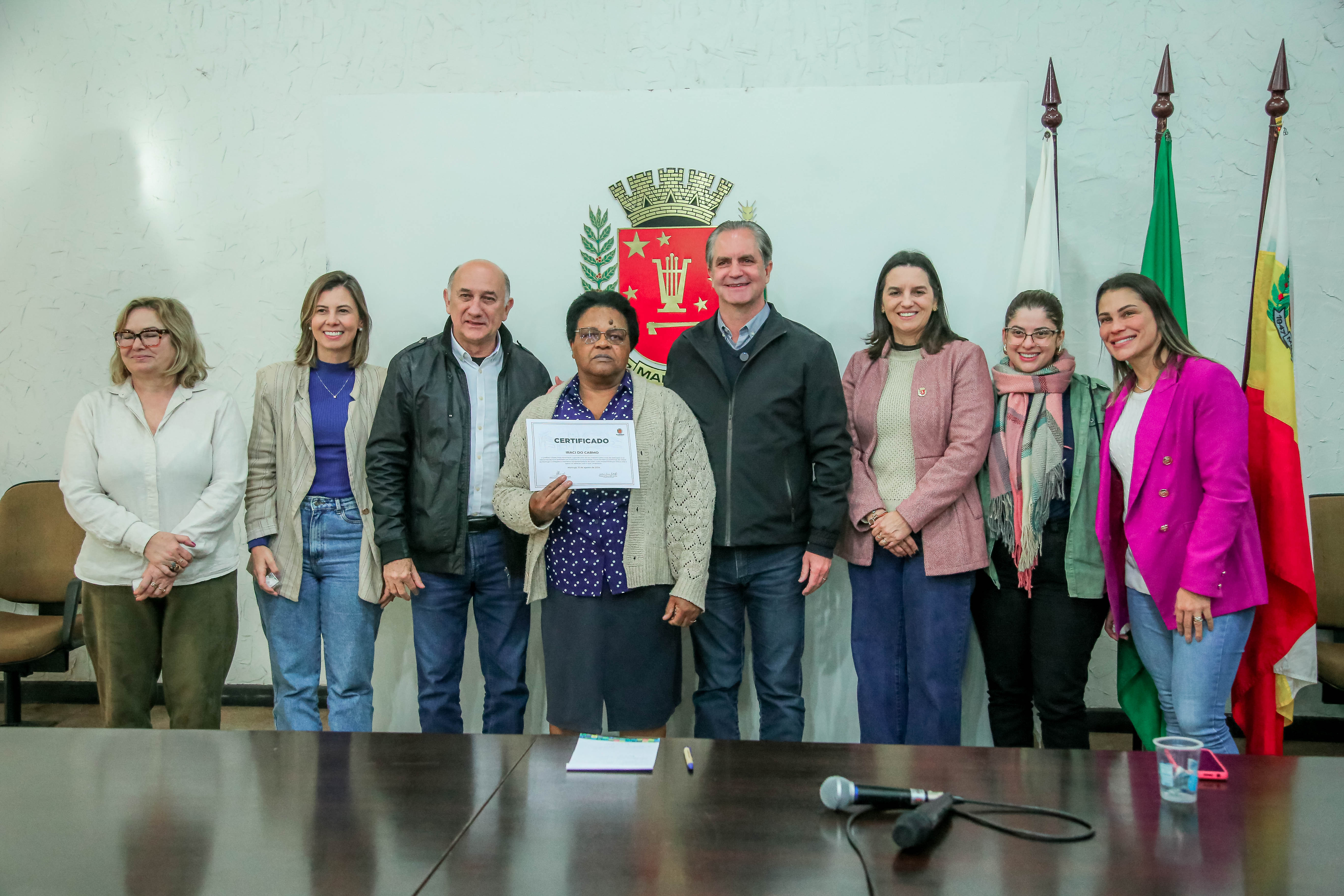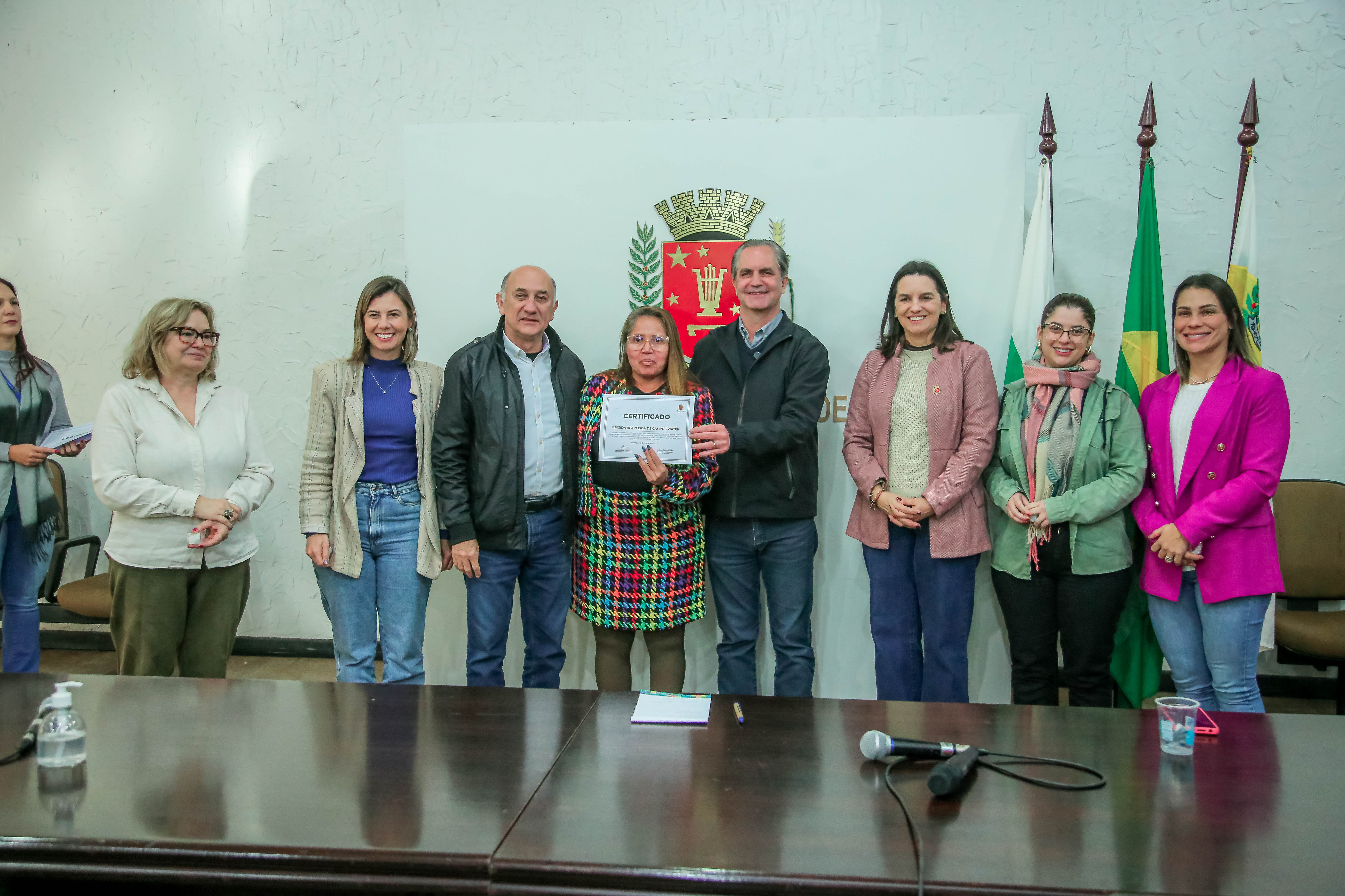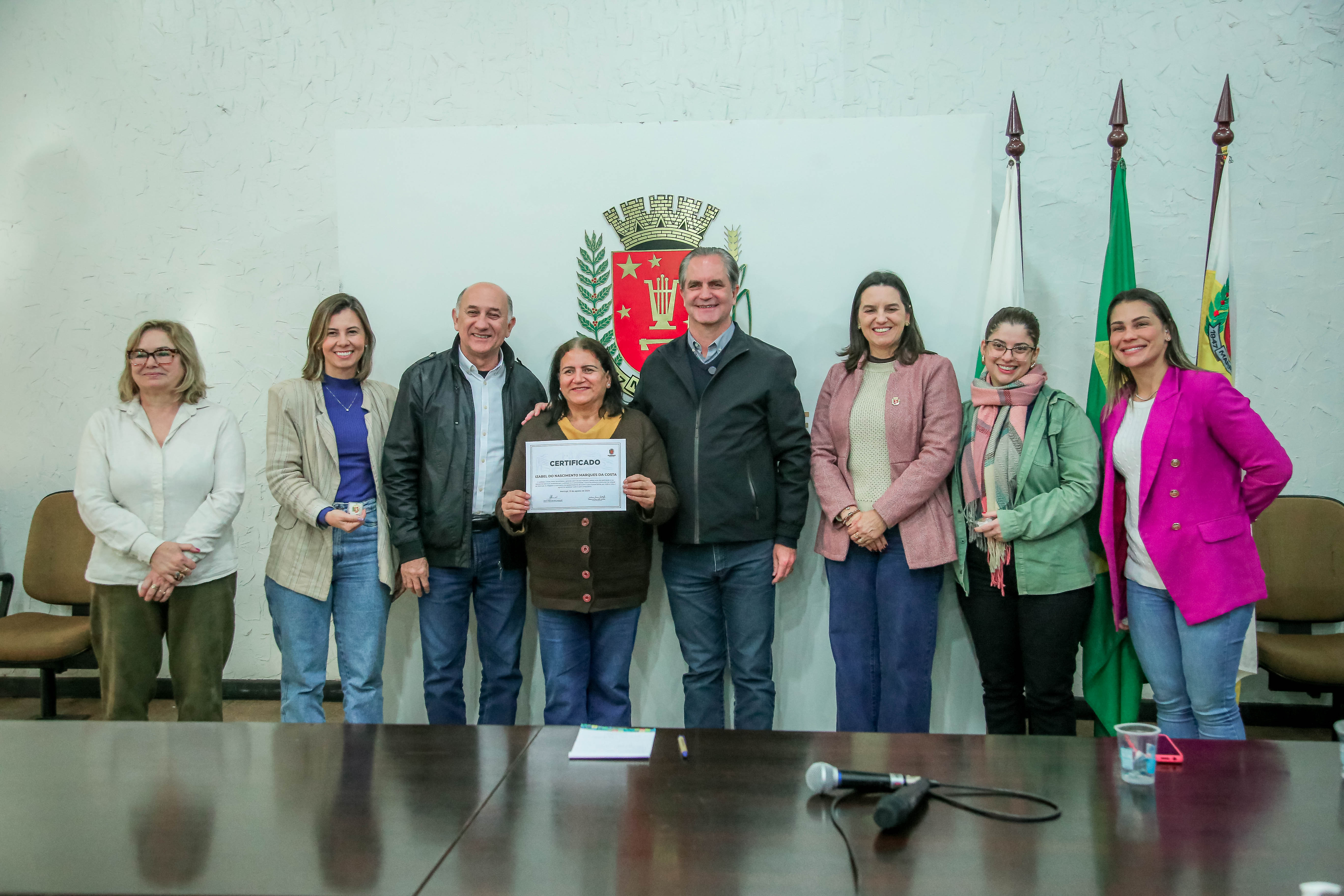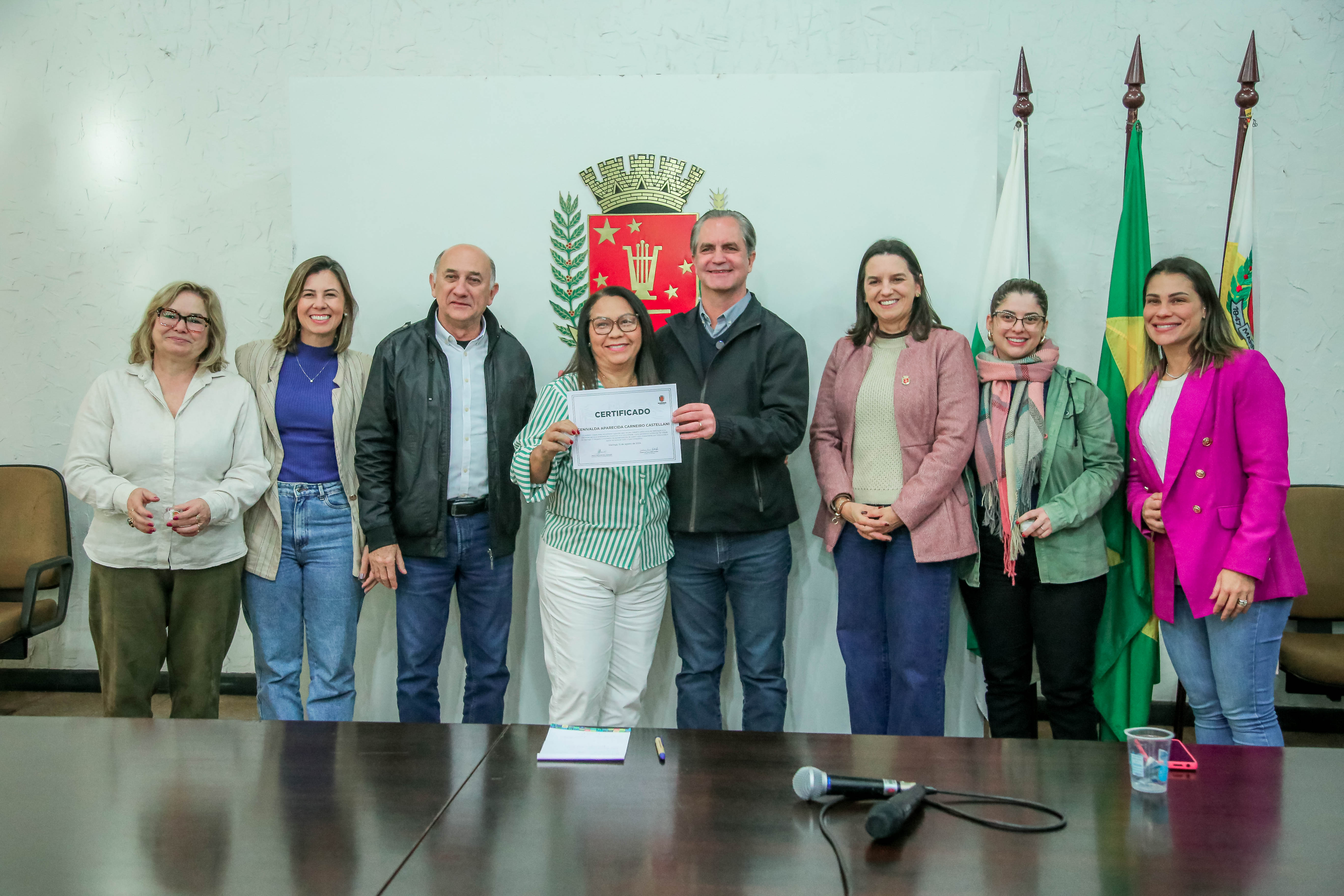 Na ocasião foram entregues os certificados de aposentadoria e um bóton, com o Brasão do Município em forma de agradecimento. Estiveram presentes também a secretária da educação, Nayara Caruzzo, secretária da mulher, Terezinha Pereira, secretária da limpeza urbana, Nathália Macedo, secretária da saúde, Leydianne Karina Rissardo e a assistente social da Maringá Previdência, Dayane Deretti Guerra.