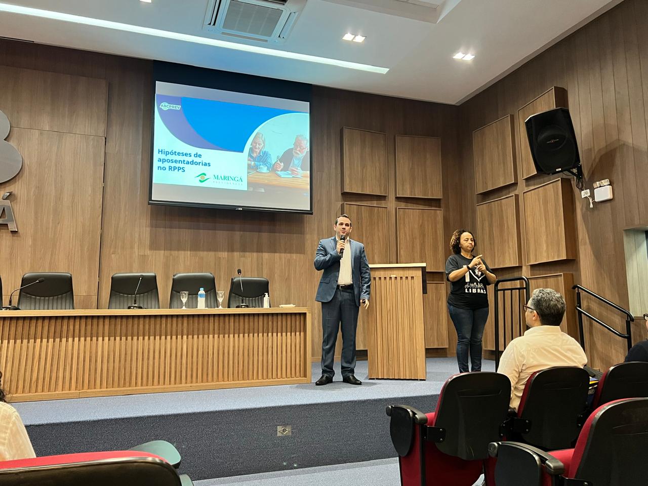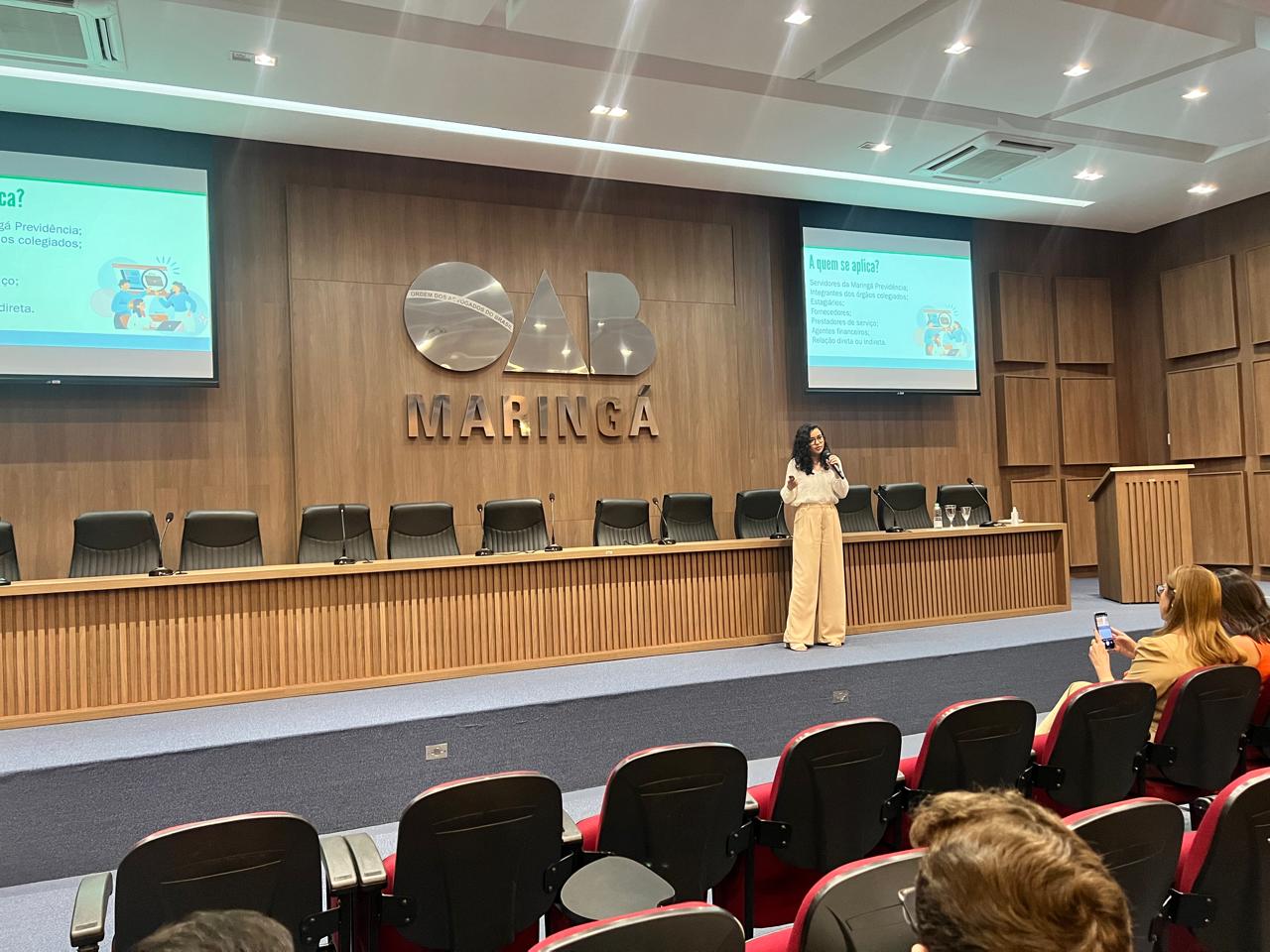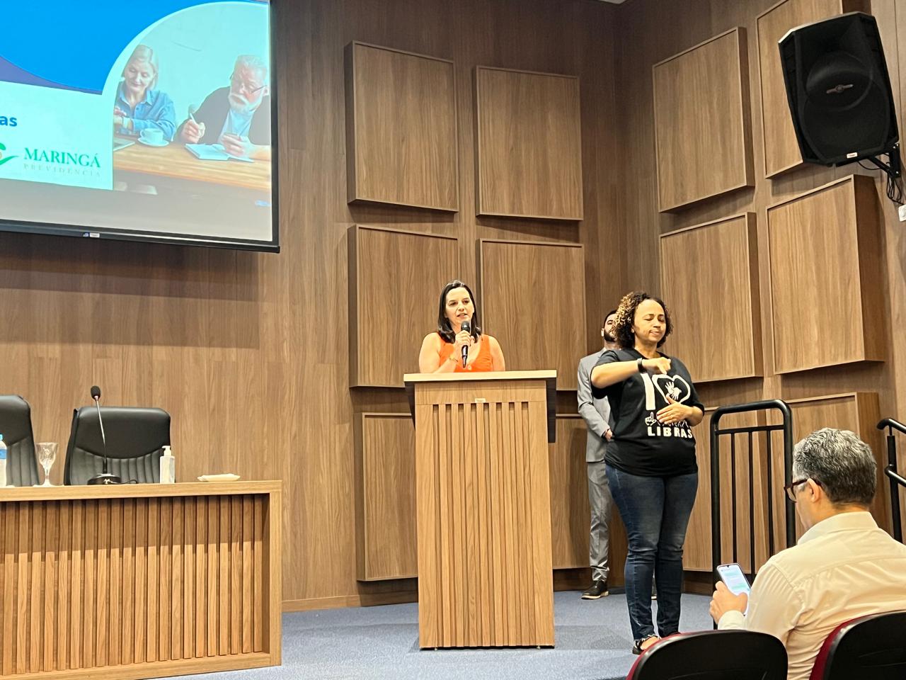 Durante o evento, a assistente social Dayane Cristina Deretti Guerra abordou os Projetos Pré-Aposentadoria, enquanto a servidora Alessandra Cabral tratou dos Projetos Pós-Aposentadoria. A gerente de controle interno, Bárbara Garcia, destacou o Código de Ética da Maringá Previdência. O atuário Luiz Cláudio Kogut trouxe uma perspectiva histórica sobre a busca pelo equilíbrio financeiro e atuarial da Maringá Previdência.
